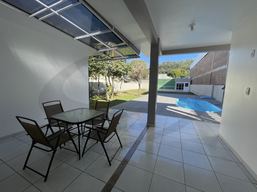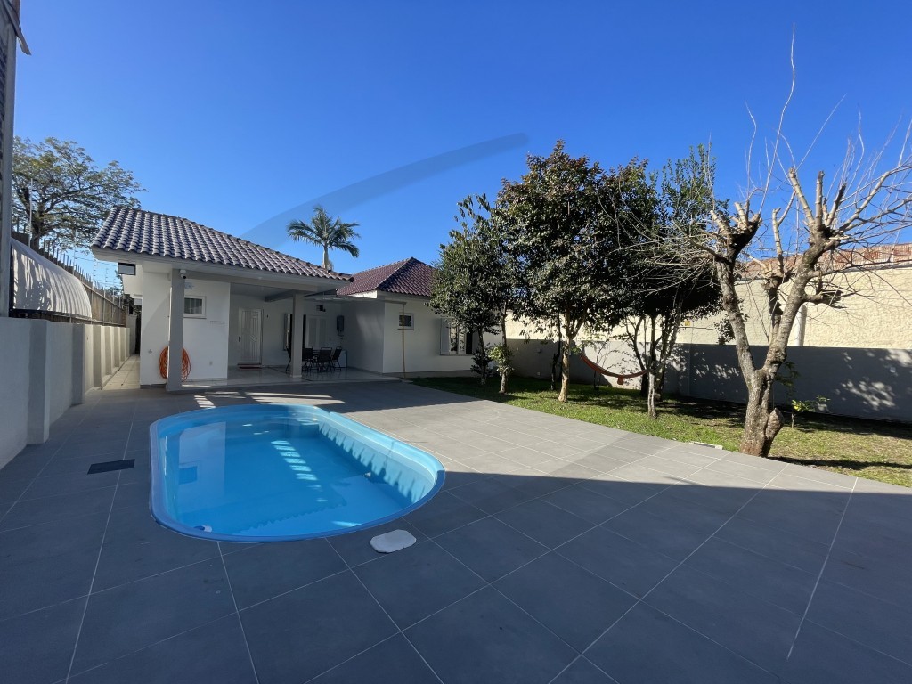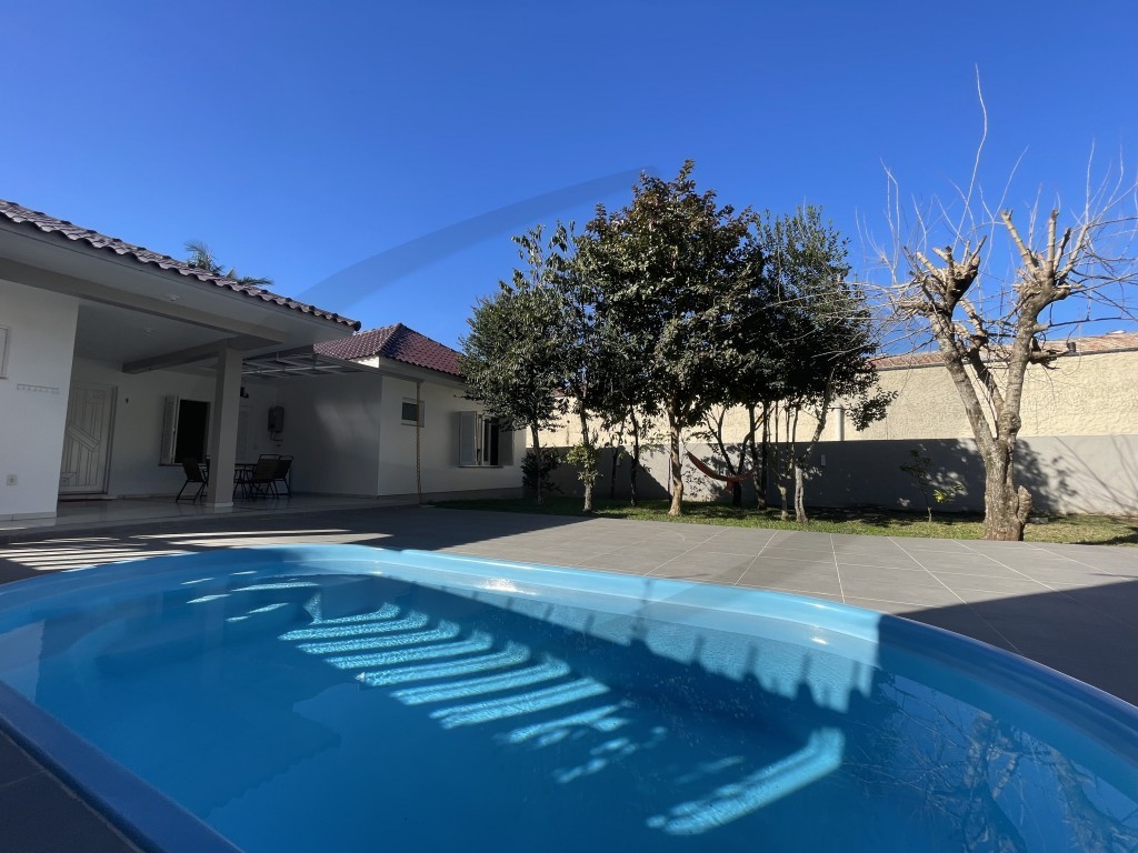 O imóvel perfeito para viver com conforto, segurança e lazer! Esta belíssima casa plana, com 188 m² de área construída em um terreno generoso de 937 m², oferece tudo o que sua família precisa em um só lugar. Amplo ambiente integrado de estar e jantar, com excelente iluminação natural, cozinha espaçosa, 03 dormitórios (sendo 01 suíte), banheiro social e banheiro auxiliar, garagem ampla com churrasqueira para reunir amigos e família, varanda coberta. Área externa incrível, com piscina, quadra para basquete, depósito e um super pátio murado, com árvores, sistema de iluminação e privacidade. Segurança e comodidade: sistema de videomonitoramento, sistema de alarme, cerca elétrica, dois portões eletrônicos, aquecimento a gás, aparelhos de ar-condicionado split e móveis inclusos. Localização próxima ao Centro, ideal para quem busca qualidade de vida, sem abrir mão da segurança e da praticidade.